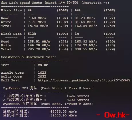 执行命令启动测试:通过远程工具登录VPS,把刚才复制的命令粘贴到终端,按回车即可启动。脚本会自动下载临时准系统文件,然后进入测试流程,全程不用手动干预,终端会实时显示测试进度。