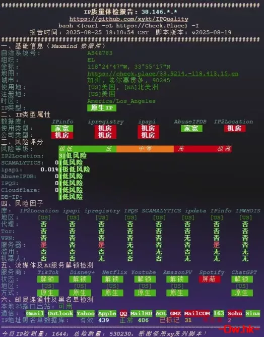 NodeQuality并非单一测试工具,而是整合了Yabs、IPQuality、NetQuality、“融合怪”的核心功能——就像把“测硬件的尺子”“查IP的放大镜”“看网络的测速仪”整合到一个工具箱里,不用反复切换脚本,一次运行就能拿到VPS的硬件性能、IP质量、网络稳定性等全维度数据。