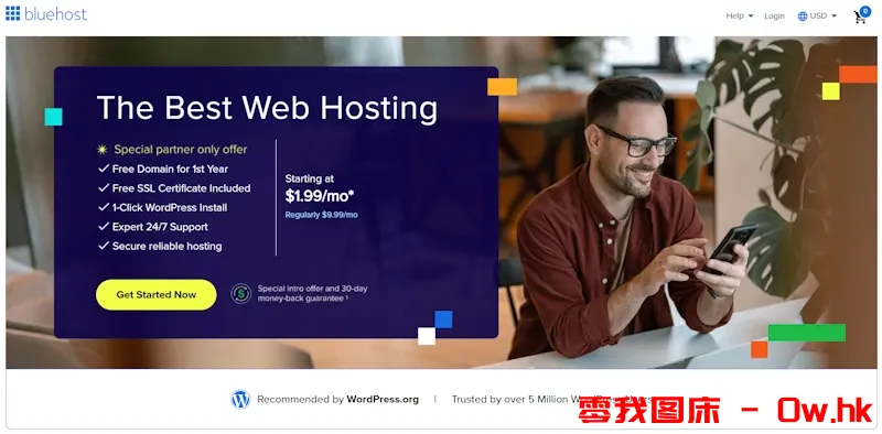BlueHost ,一个老牌的主机商品牌,但是在多年之前已经转手给新的服务商旗下的产品。目前在重新新的品牌运营商下,依旧还算是一个不错的且稳定的海外主机品牌。主营WordPress专用主机,有三个方案可选,根据磁盘的大小不同选择不同。有赠送一个免费的域名可以使用一年。