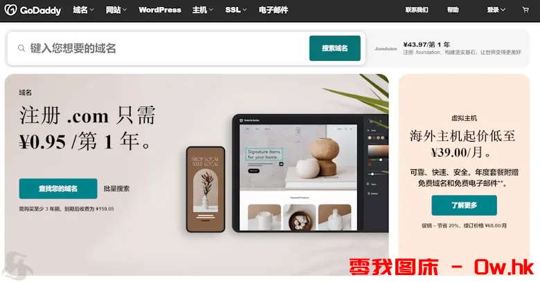 GoDaddy 至今算是以上几个服务商最长的商家,以前我们知道的是他们家的域名全球保有量最大,后来新的管理层接管后不再以域名销售为主,开始多元化以域名交易,主机,企业邮局、SSL等多产品。他们家的虚拟主机有美国和欧洲,以及亚洲机房,有赠送一个免费域名。