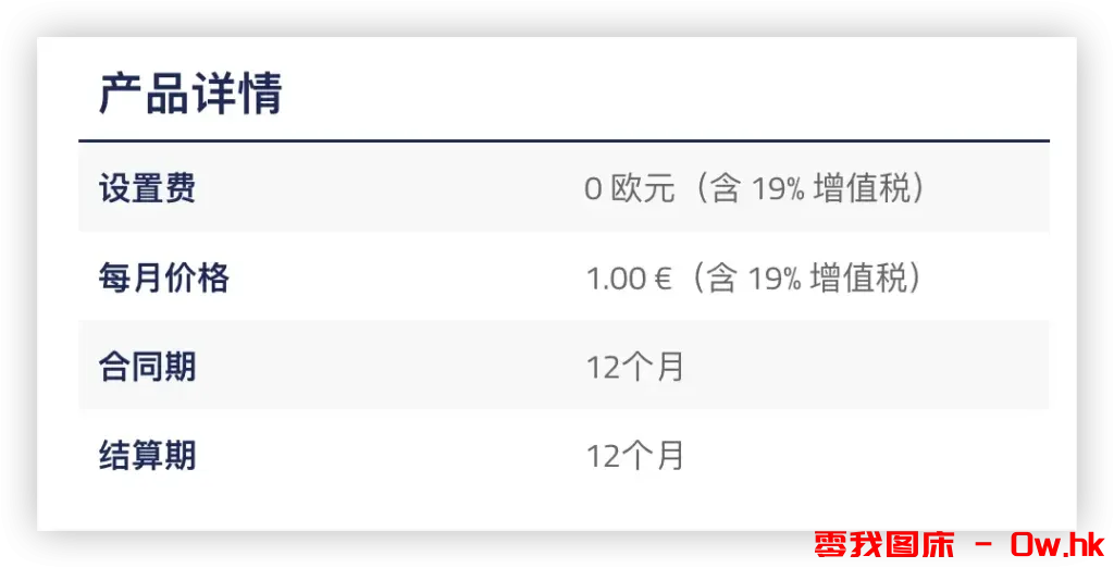 注意:此订单的合同期为12个月。虽然显示每月价格1欧元,包含增值税。但是等我们注册完成之后,就会看到免税价格,不要担心。