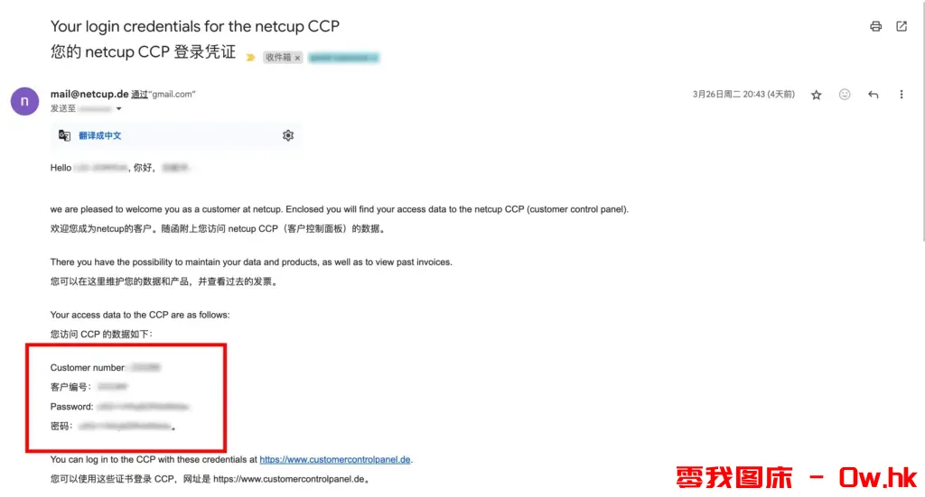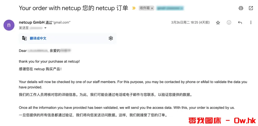 此时邮箱会收到第一封 Netcup 官方发来的感谢购买产品的邮件